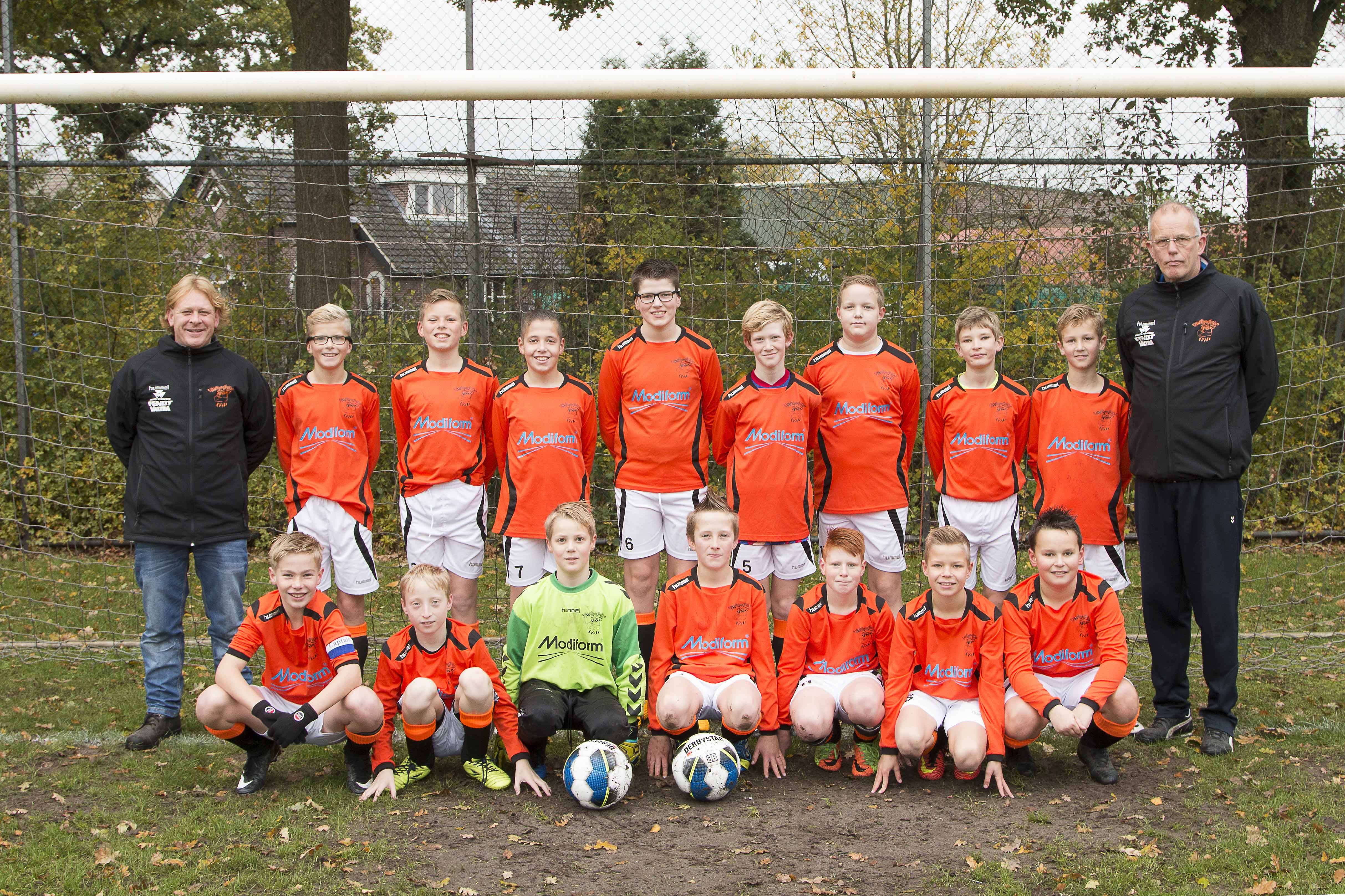 De JO13-1 bleef hun favoriete positiespelletje spelen en leek de wedstrijd naar zich toe te trekken. Er werd weer goed overgespeeld en uit een van de combinaties kon Douwe via een assist Tim R. weer in stelling brengen die nogmaals hard uithaalde 3-4.