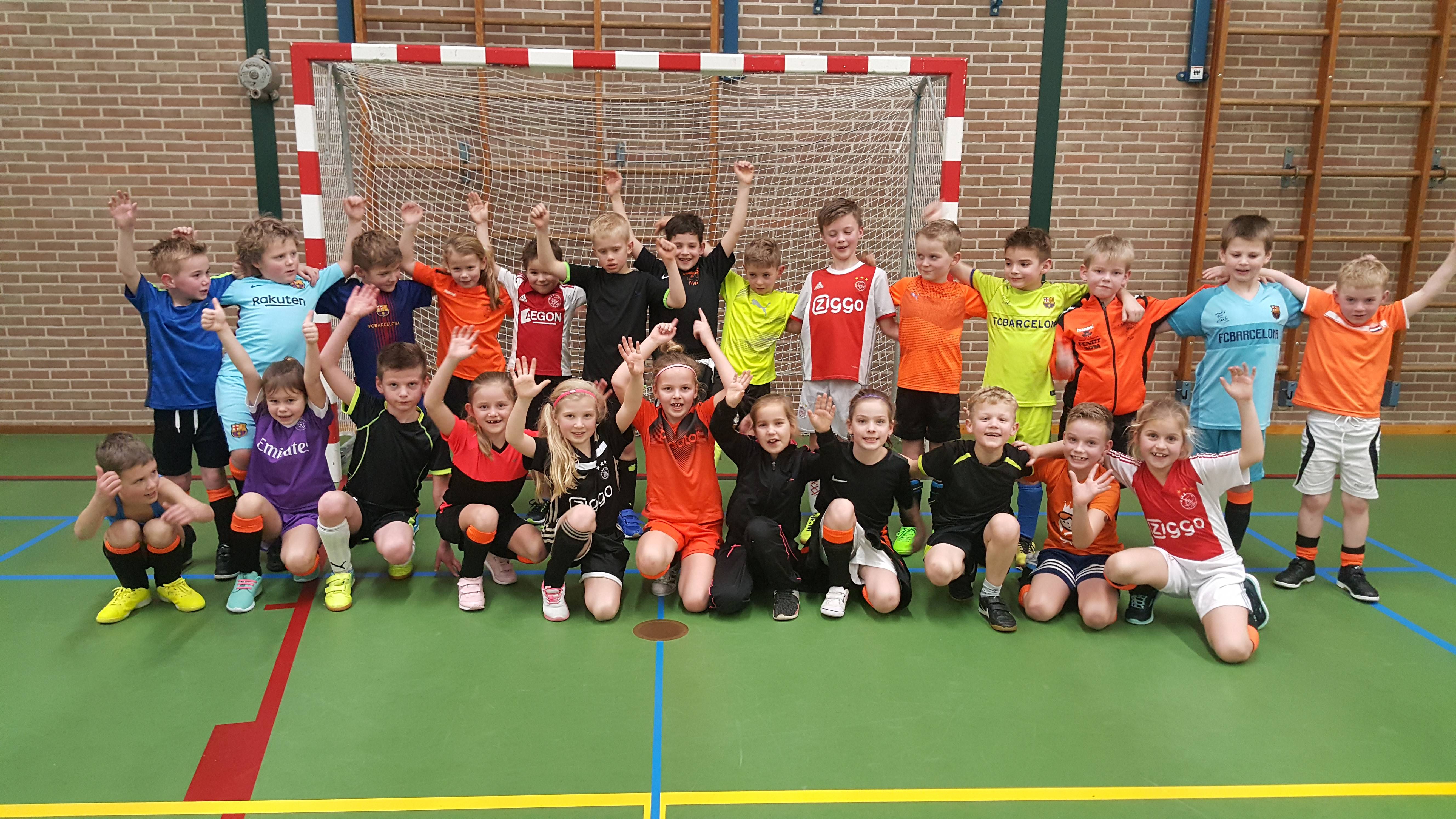 De drie JO8-teams hebben een gezellig zaalvoetbaltoernooi gespeeld zaterdagmiddag. Alle aanwezige kinderen werden verdeeld over vier teams: