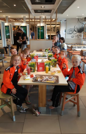 Afgelopen zaterdag beleefden de spelers van de JO8-2 (maar ook de aanwezige ouders, broers en zus) het hoogtepunt van het seizoen! Nadat we bij een leuk toernooi in Stroe, helaas alle wedstrijden verloren, kregen de kinderen van leider Gert een beloning die hij al het hele seizoen belooft heeft. We gaan namelijk dineren bij het restaurant met de gouden bogen (in de volksmond ook wel de Mac genoemd).