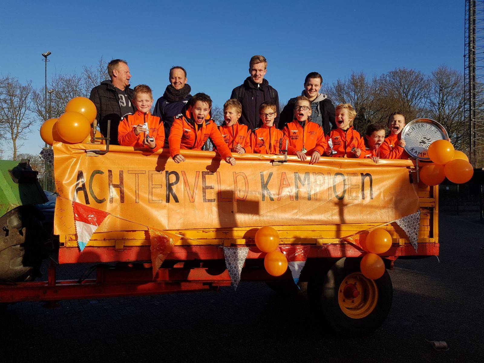 Uiteraard werd volgens de traditie het kampioensschap gevierd meteen rondrit door het dorp op de platte wagen, welke door onze eigen Prins Carnaval werd gereden.
