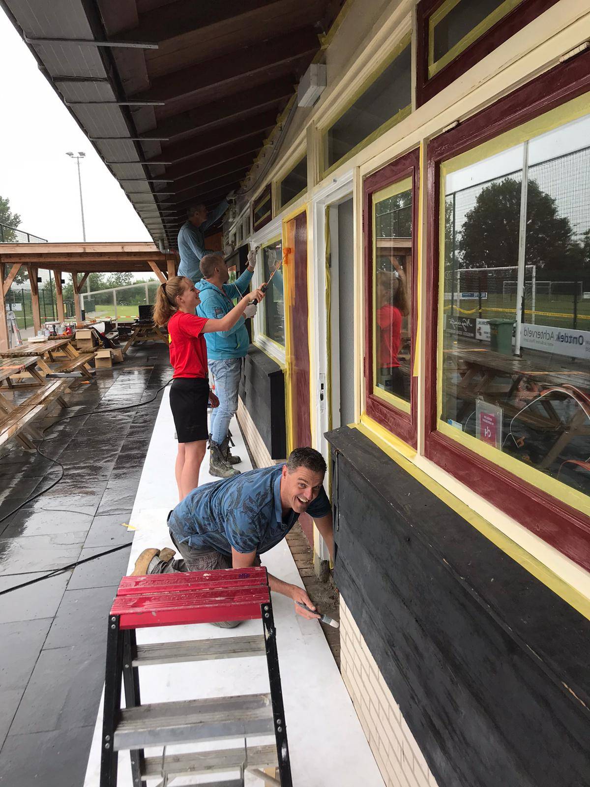 Vorig jaar moest de klussendag helaas geannuleerd worden wegens de hitte. Dit jaar zat het weer gelukkig mee en viel er maar een klein spatje regen. Er is veel geschilderd deze dag en de buitenkant van ons complex is nu nagenoeg volledig in onze clubkleuren oranje-wit geschilderd!