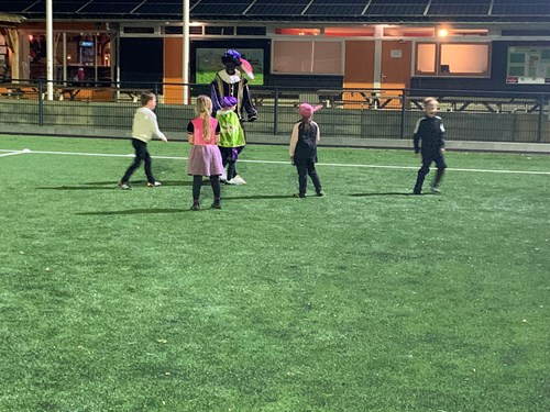 Toen was het tijd voor spelletjes op het veld, daarna lekker warm naar binnen en had Sint over elk team nog iets heel leuks op papier gezet, de pieten hebben het leuk verteld.