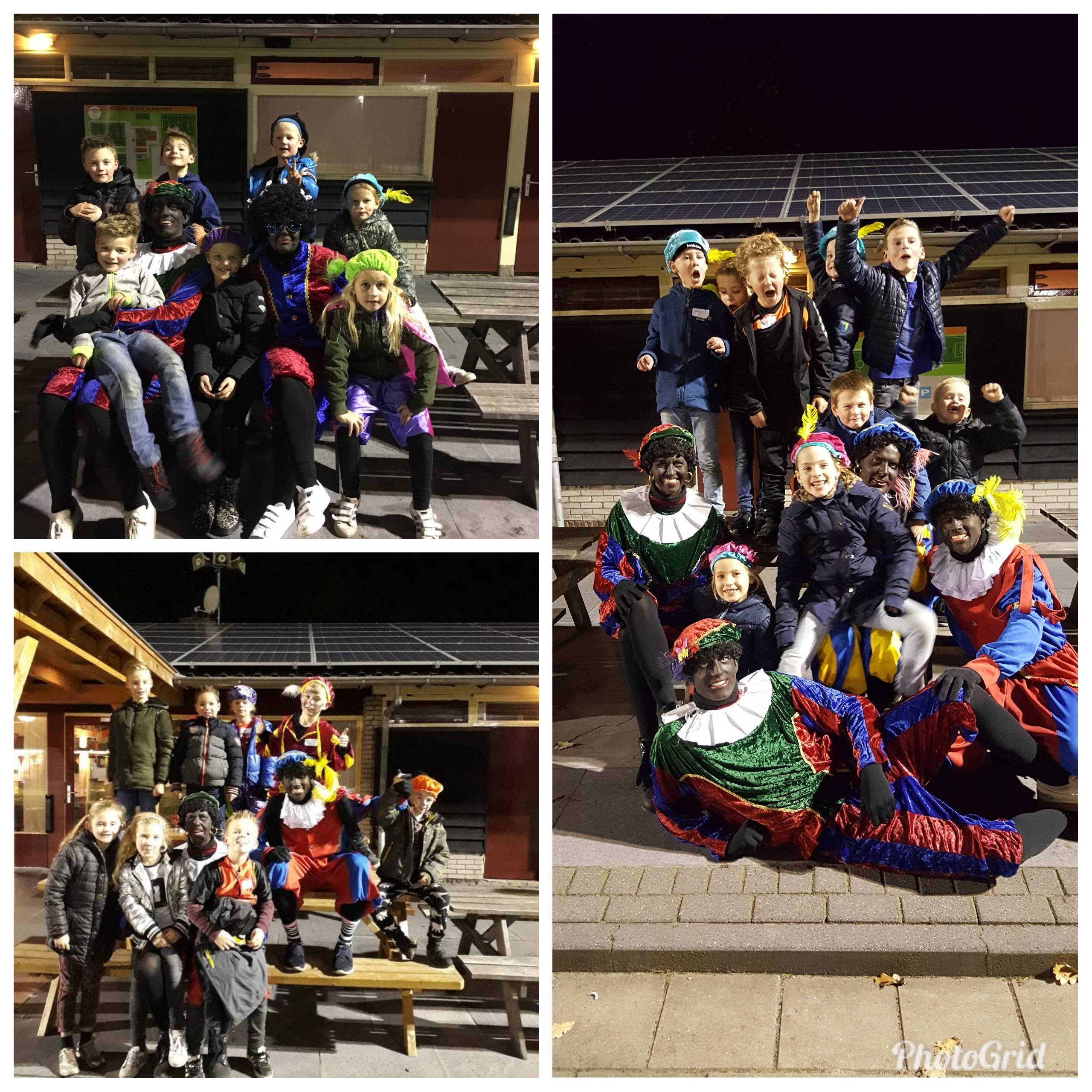 Ook dit jaar hebben de Pieten weer een bezoek gebracht aan onze vereniging. Toen de kinderen aankwamen, zagen ze maar één Piet staan. Wat bleek, de andere Pieten hadden gehoord dat de kinderen bij SV Achterveld heel goed kunnen voetballen, maar de Pieten zelf kunnen nog niet zo goed voetballen. Dus waren ze een beetje bang.